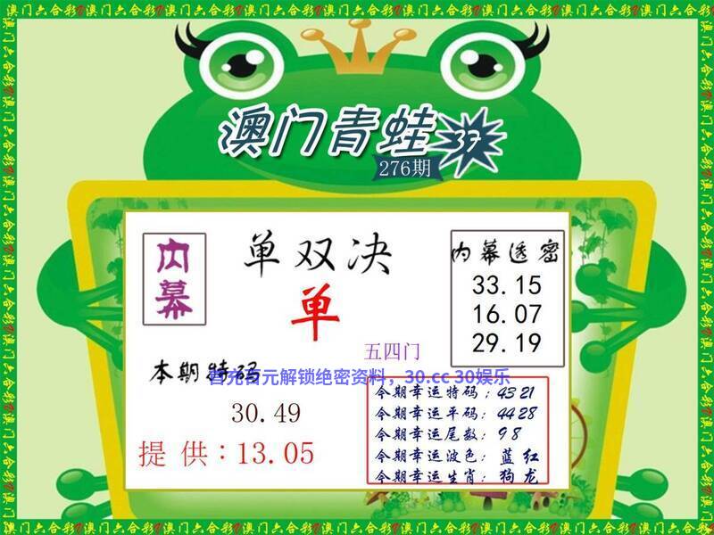 276期:Ω前后两肖┣后肖+牛鼠┫开:鸡09准